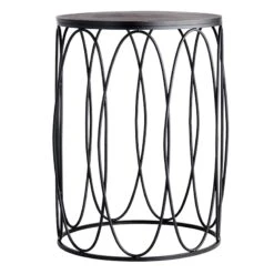 Oval Wood Top Gothic Table With Brown Arch Decorative Metal, Large