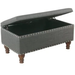 Jasmine Charcoal Grey Upholstered Storage Bench With Nail Heads