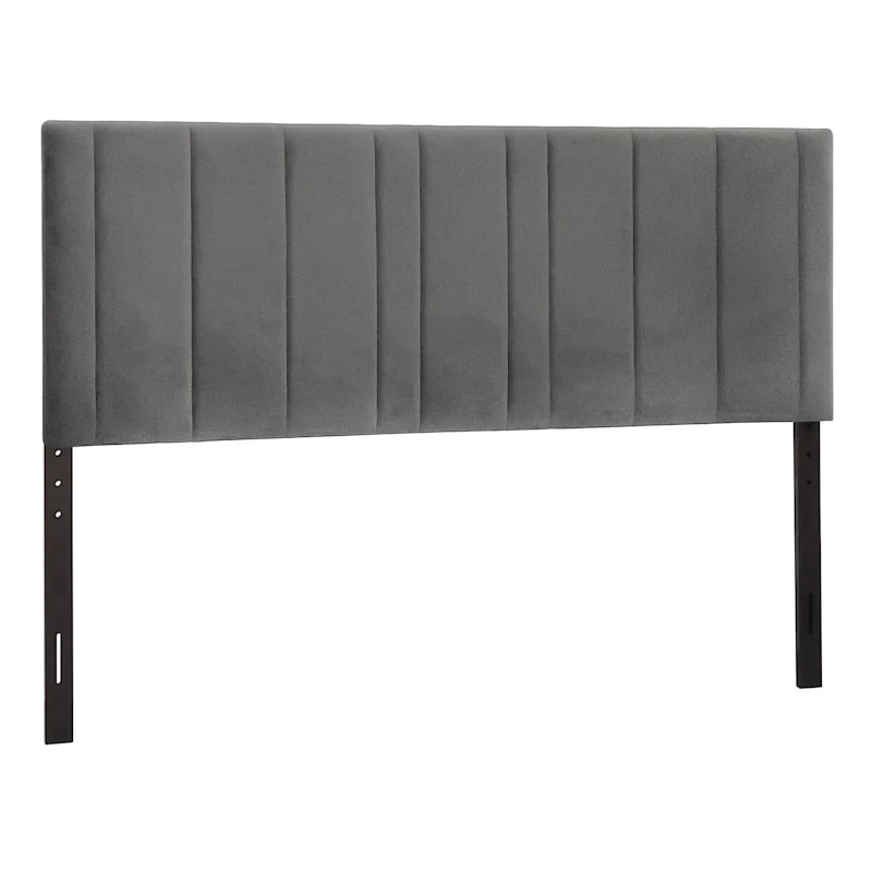 Create a chic modern look for your bedroom with our Chandler grey velvet channeled king headboard. With a contemporary rectangular silhouetted and the channel tufted details, this headboard can complement any decor. Built with sturdy and sustainable wood and faux wood and metal finished with a durable velvet fabric, this headboard is the epitome of class and function.
